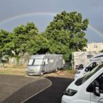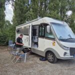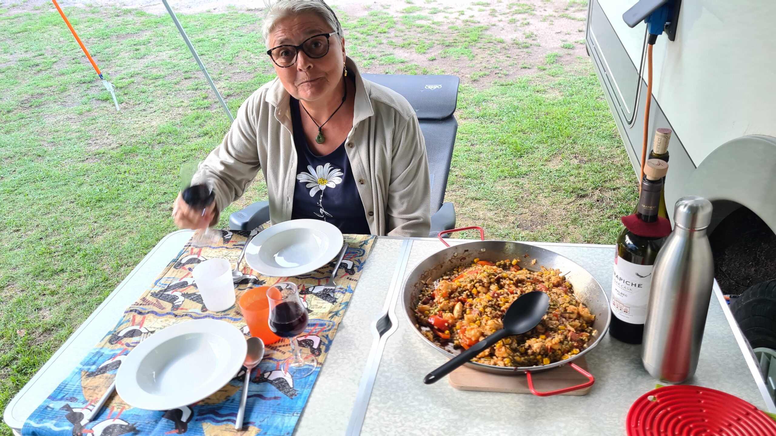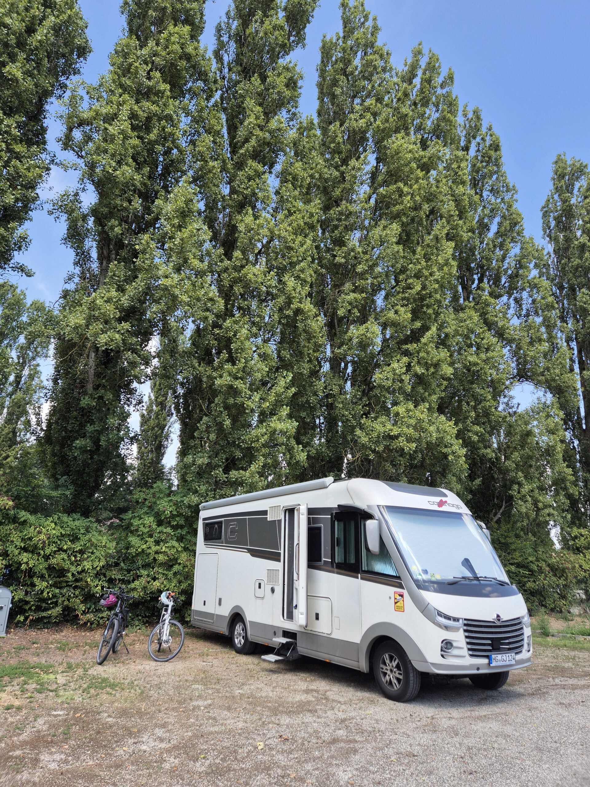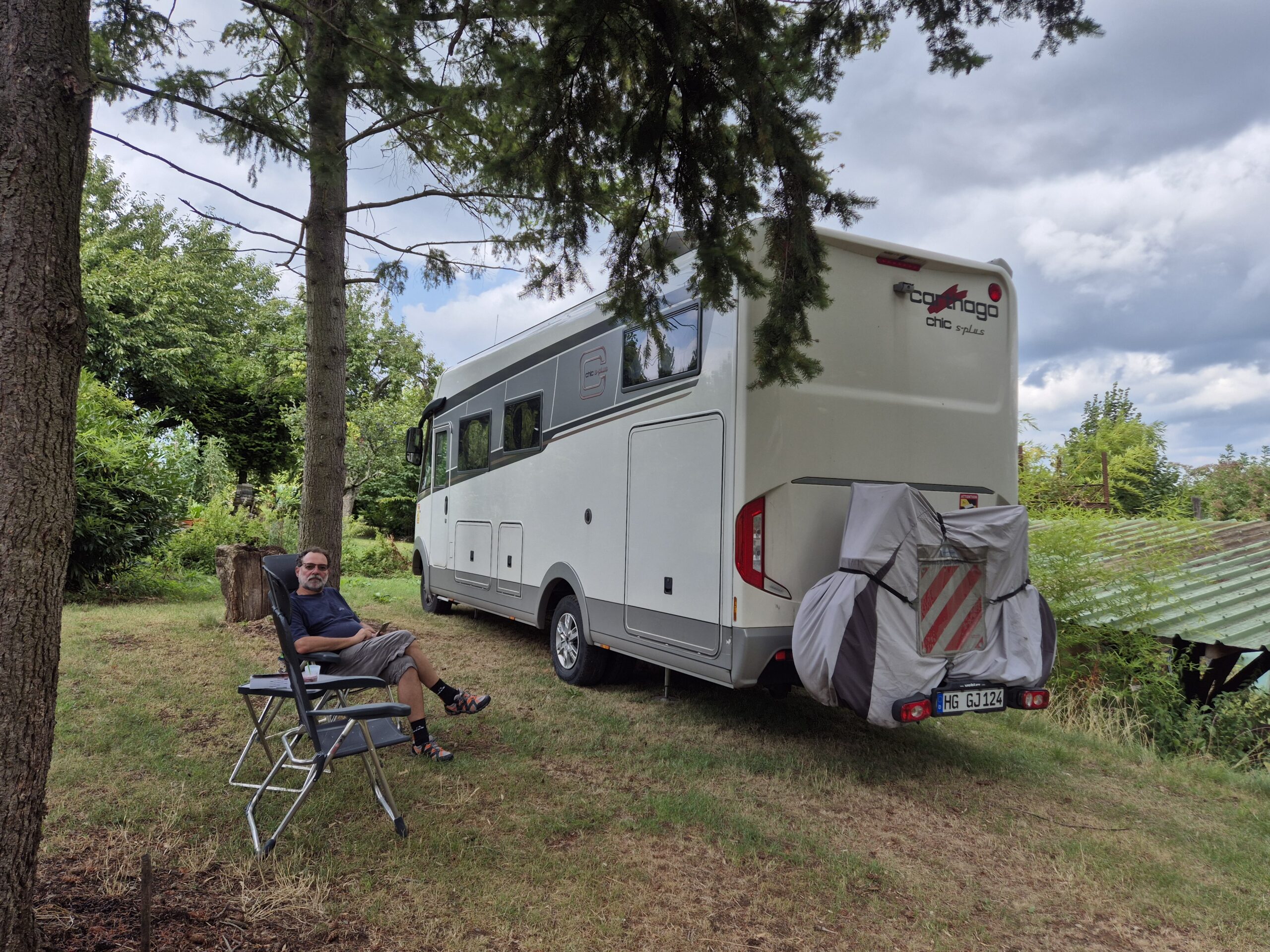 Wir dagegen machen es uns auf der „Womo-Terrasse“ bequem und bewegen uns so wenig wie möglich. Auch mal schön, denn heiß ist es zudem.