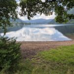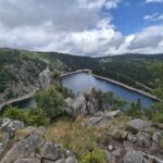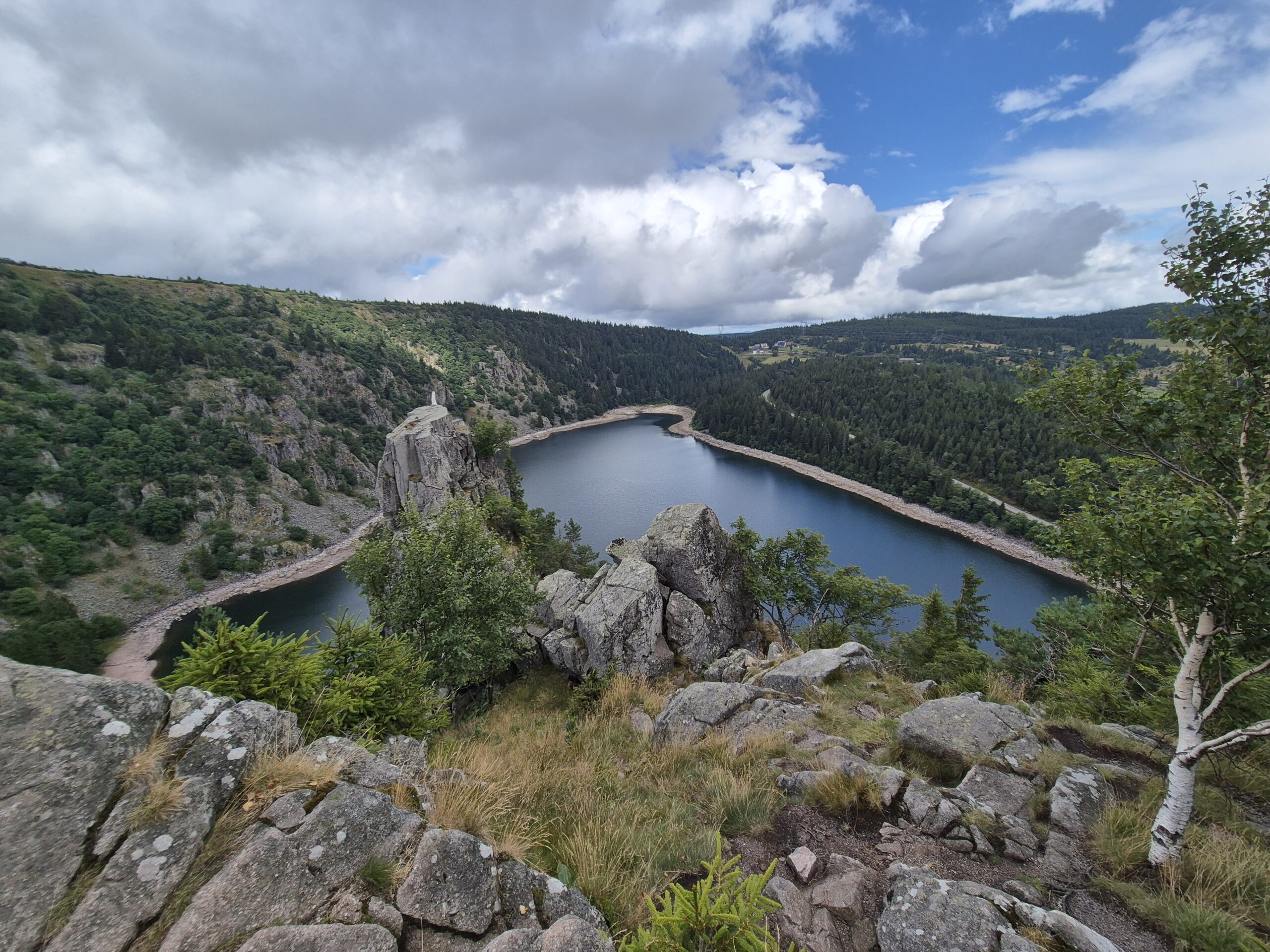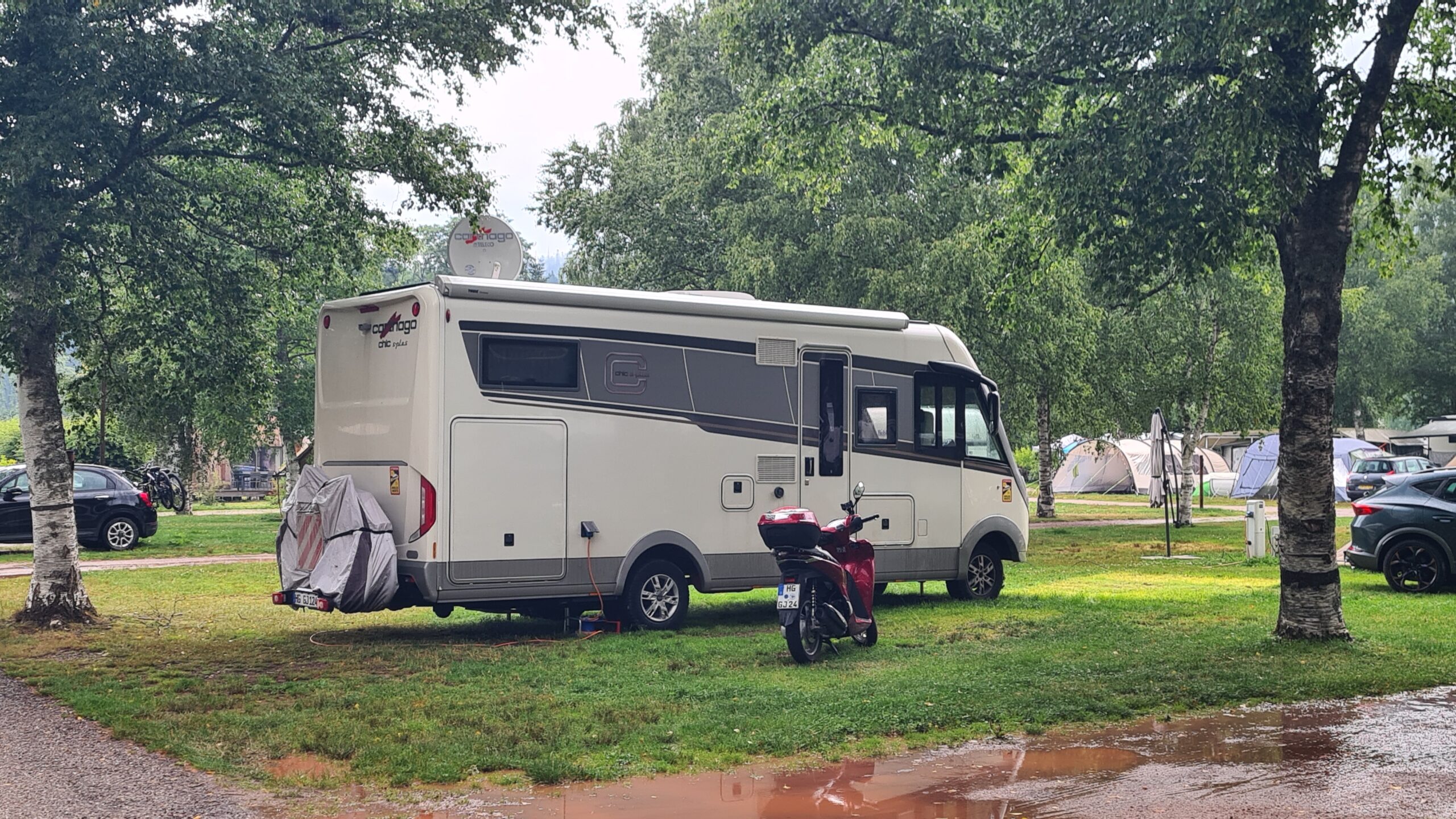 Lac de Géradmer: Ist der größte Natursee der Vogesen.Wir machen uns nach dem Frühstück auf den Weg zum Lac Géradmer. Ab und zu blitzt sogar die Sonne durch. Auf der Promenade tummeln sich einige Menschen. Viele nutzen die trockene Periode für eine Wanderung um den See, denen wir uns anschließen. Knapp 6 km später mit den ersten Regentropfen erreichen wir wieder die Promenade. Unter den hübschen Zelten des Hôtels Beau Rivage finden wir ein trockenes Plätzchen, um den Schauer abzuwarten.- Lac de Longemer: Jan macht noch einen kurzen Abstecher zu unserem „Haussee“. Gabi legt sich flach mit einer IBU. Den Nachmittag verbringen wir im Womo und lassen die Regenschauer über uns hinab regnen.