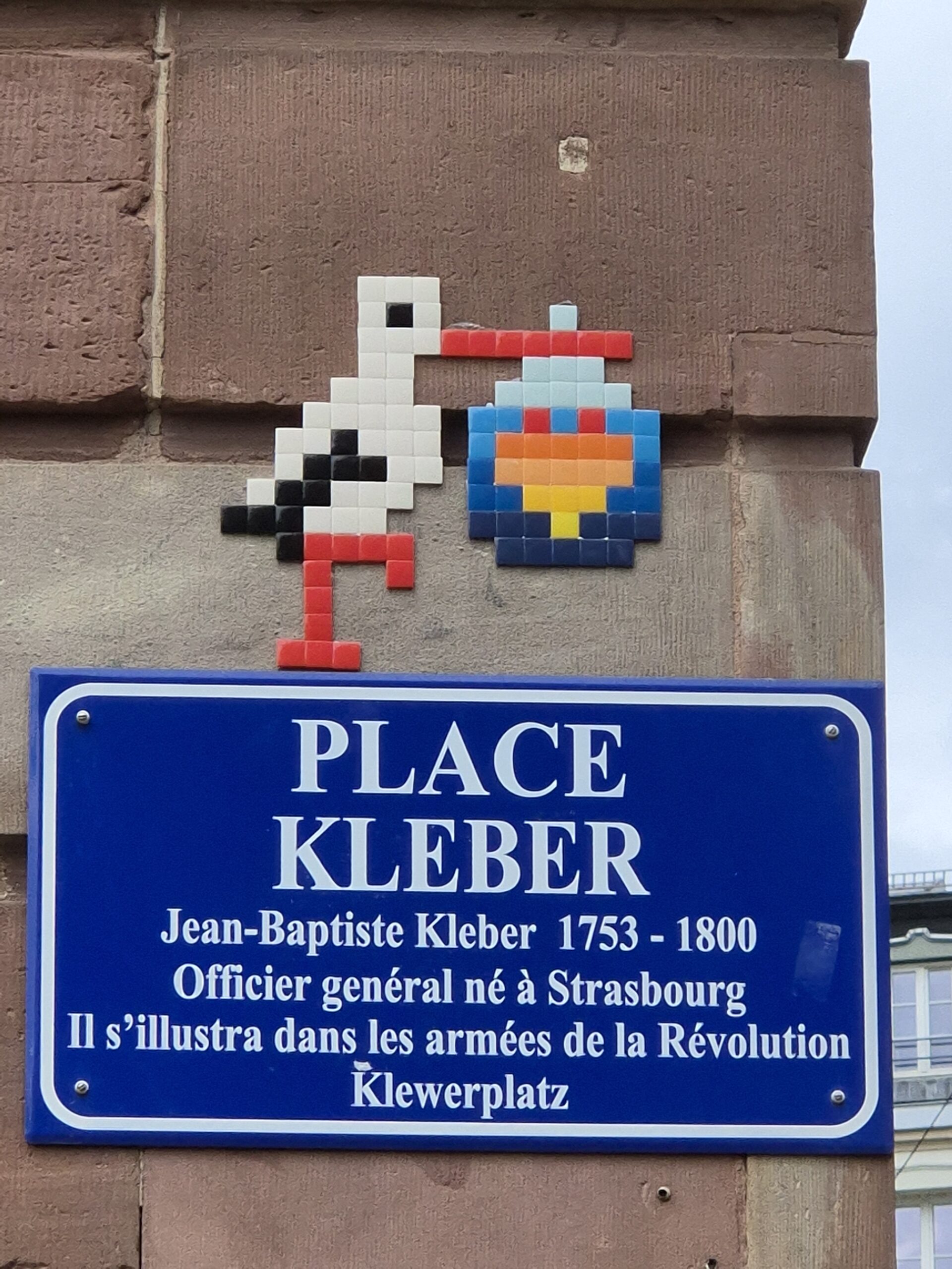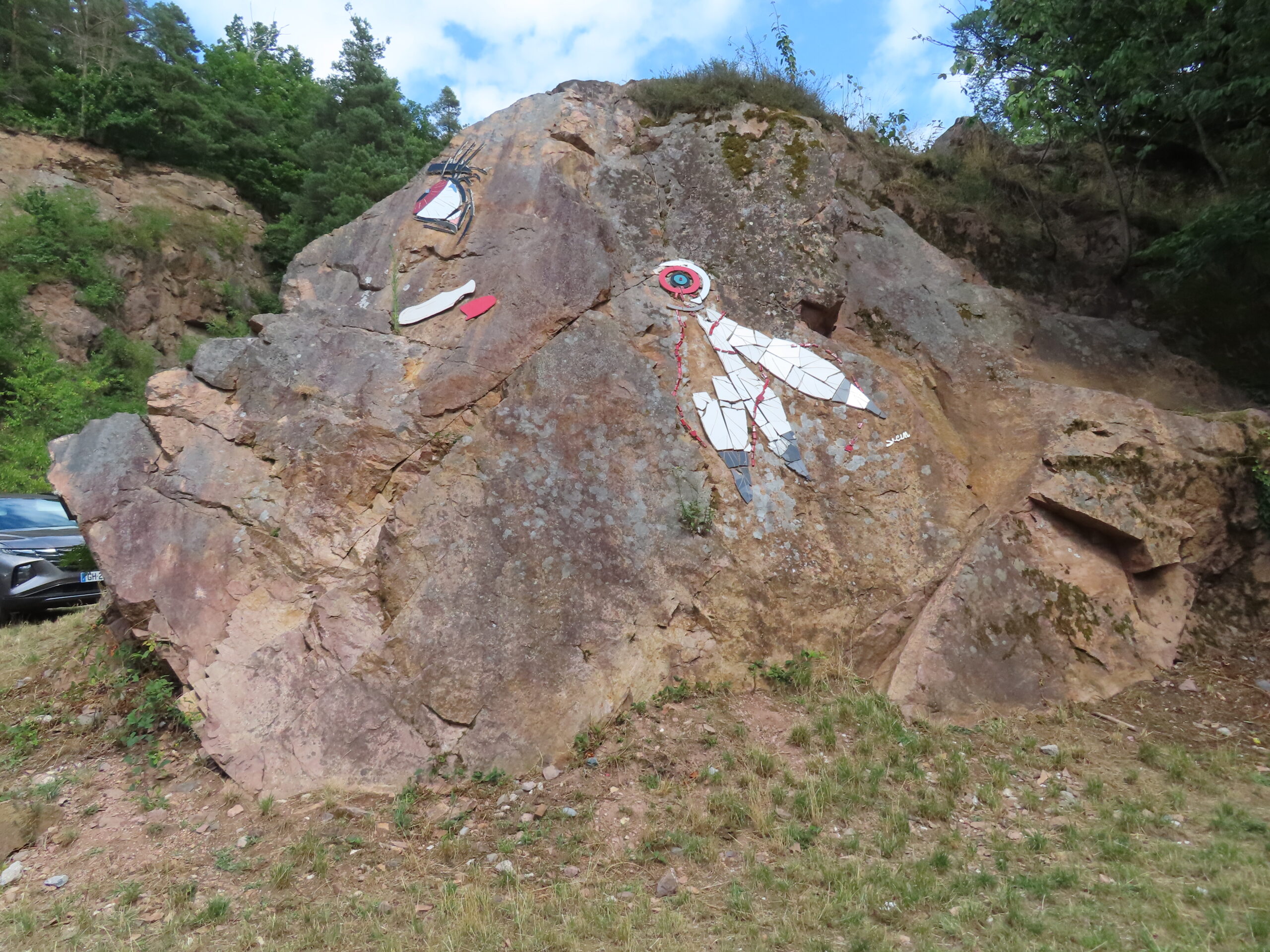 Fresque Indienne: Etwas unterhalb auf dem Parkplatz der Falknerei findet man den felsigen Indianerkopf. Gabi läuft die 600 m durch den Wald hinab, Jan nimmt den Roller. Wir treffen zeitgleich beim Indianerkopf ein.- Sélestat: Nach kurzer Ruhephase machen wir uns auf zur Stadterkundung. Tour Neuve, Tour de Sorciéres, Èglise Saint-Georges de Sélestat, Èglise Sainte-Foy de Sélestat, Gerberviertel, Place du Vieux Port