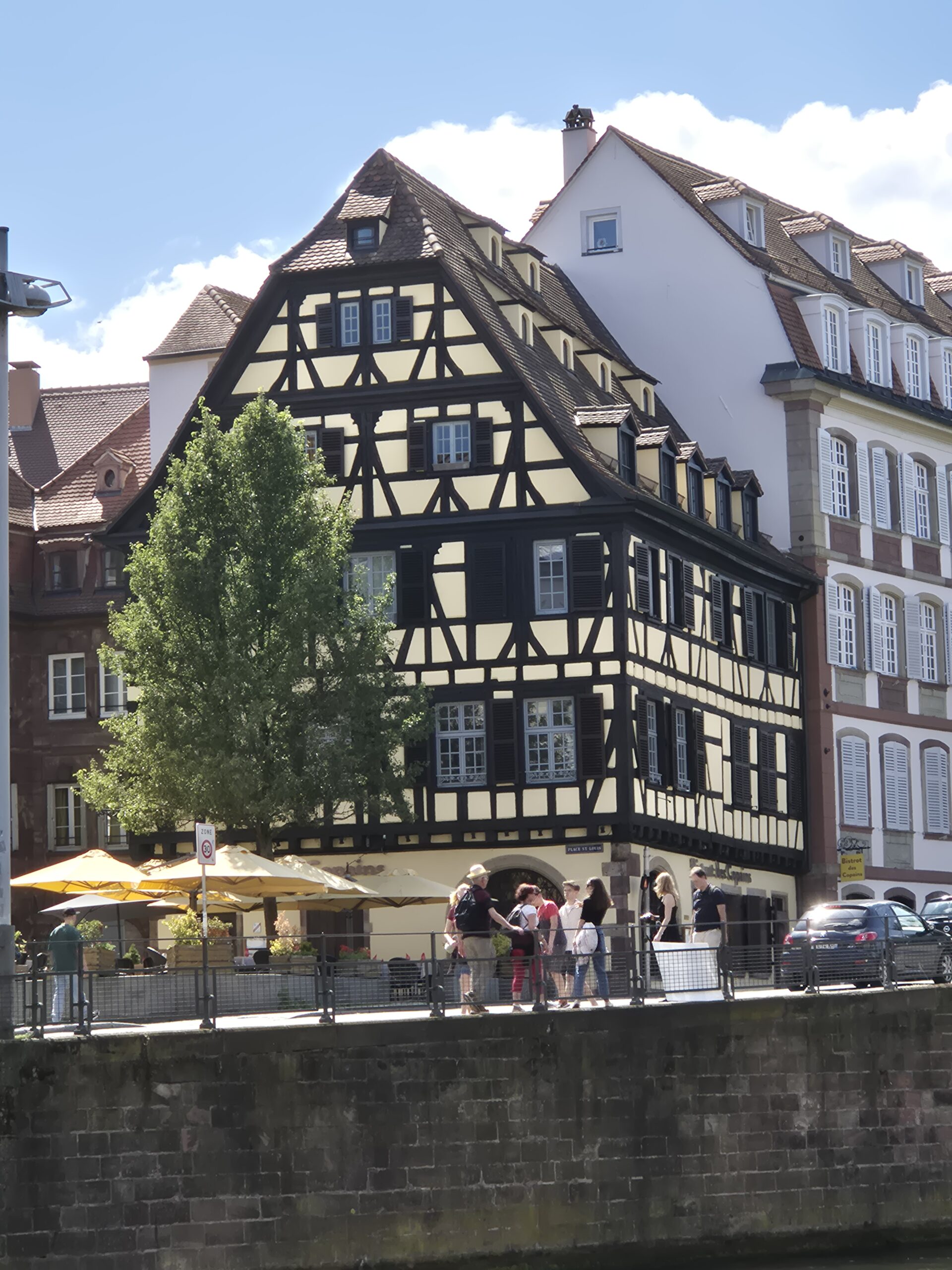 Dafür verbinden sie 3 alte Wehrtürme. Von der Dachterrasse des Barrage Vauban (Steinbrücke und Wehr aus dem 17. Jh.) hat man einen formidablen Blick auf die Kanäle, Brücken und Türme.- La Platane ist eine uralte Platane, die sicherlich schon viel erlebt hat.