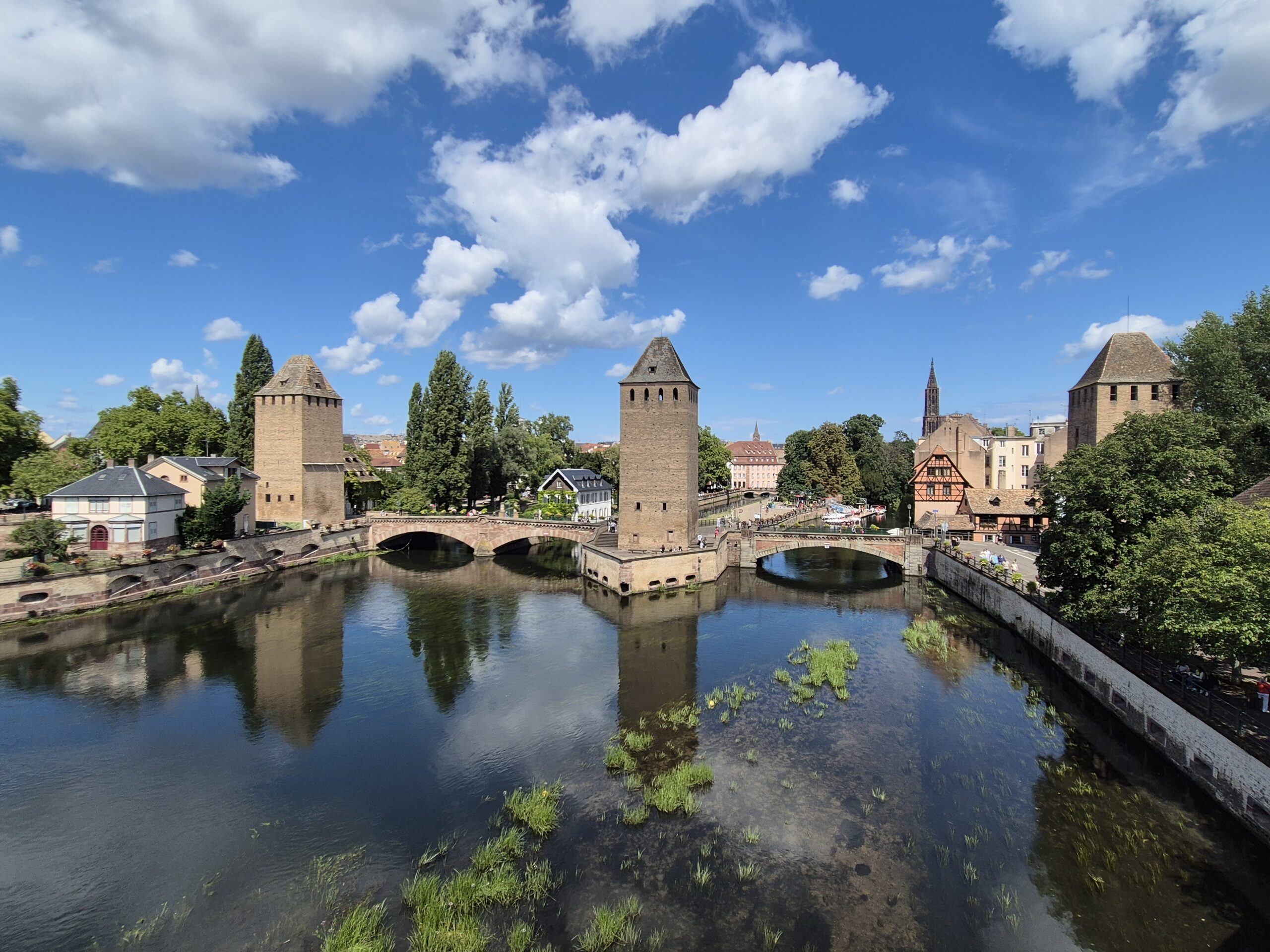 Petite France: Zum Tagesabschluss zieht es uns noch mal in das urige Viertel. Auf dem Place Benjamin Zix lassen wir uns nieder, Leute beobachten, einige Ausflugsboote werden durch den Kanal geschleust und damit kommt auch der Brückenwärter zum Einsatz.