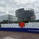 Europaparlament: Besucher sind im Gebäude zugelassen. Das lassen wir uns nicht entgehen. Absolut beeindruckend. Im Parlamentssaal selbst wird gerade irgendetwas umgebaut.