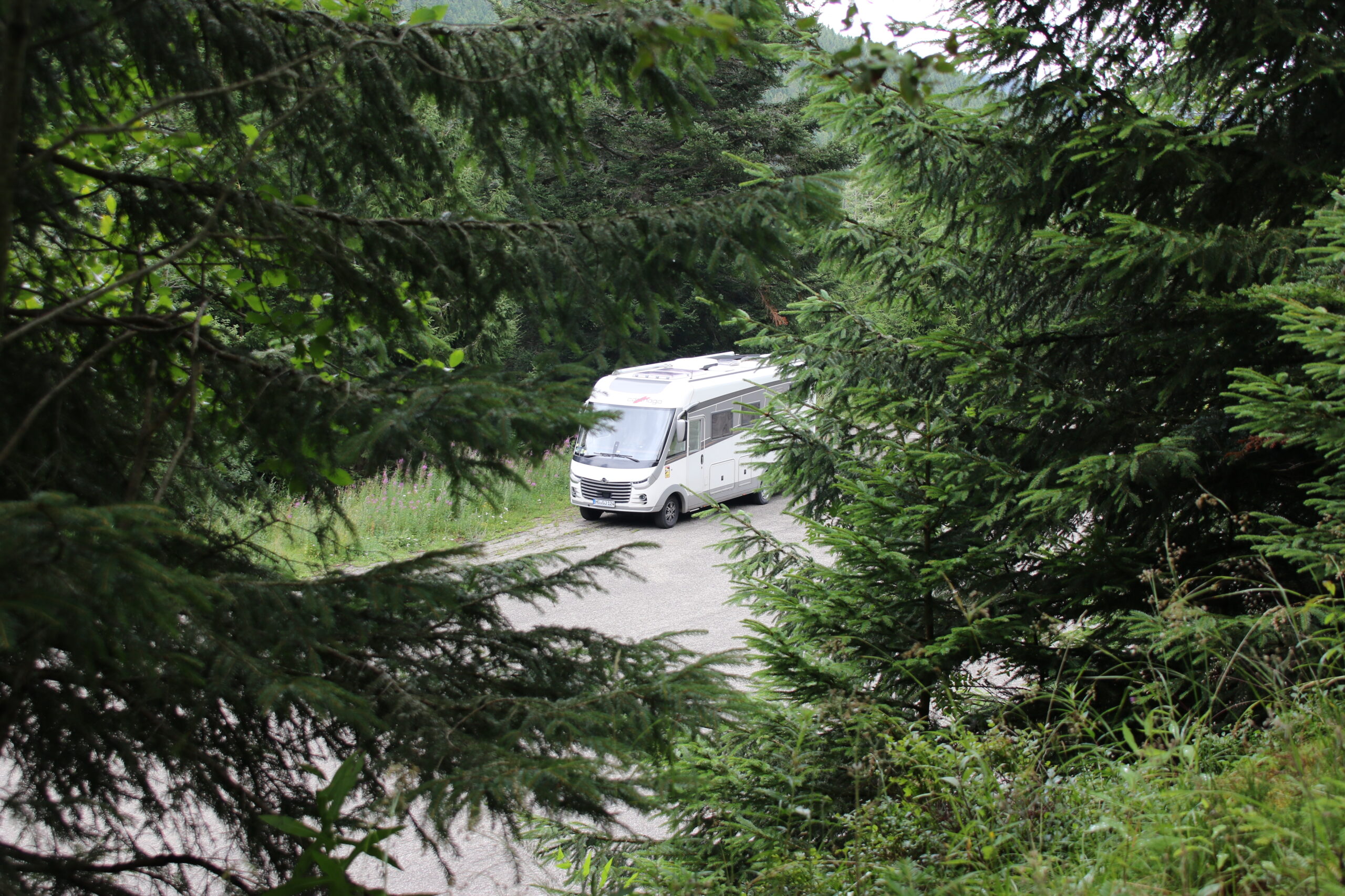 Enzian, Knabenkraut, Hornveilchen und vor allem Erika soweit das Auge reicht begleitet den Weg. Mit einigen Regentropfen erreicht auch Gabi das Womo. - Tanet Lac Vert: Über den Col de La Schlucht, auf dem bereits einige Womos für die Nacht stehen, zieht es uns zu einem Parkplatz nahe dem Lac Vert. Der obere Parkplatz hat für uns keinen ebenen Parkplatz, also fahren wir eine Etage tiefer zum Parkplatz neben dem Skilift. Gewitterdonner verhindert die Wanderung zum Lac Vert.