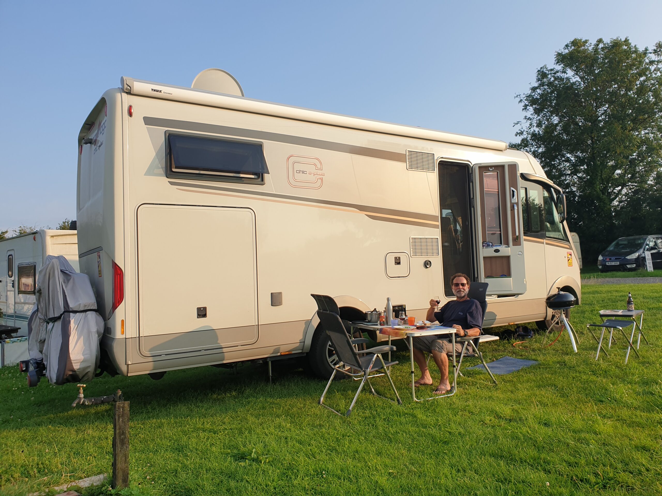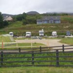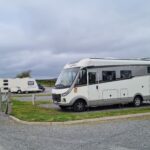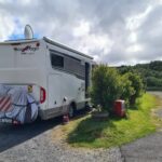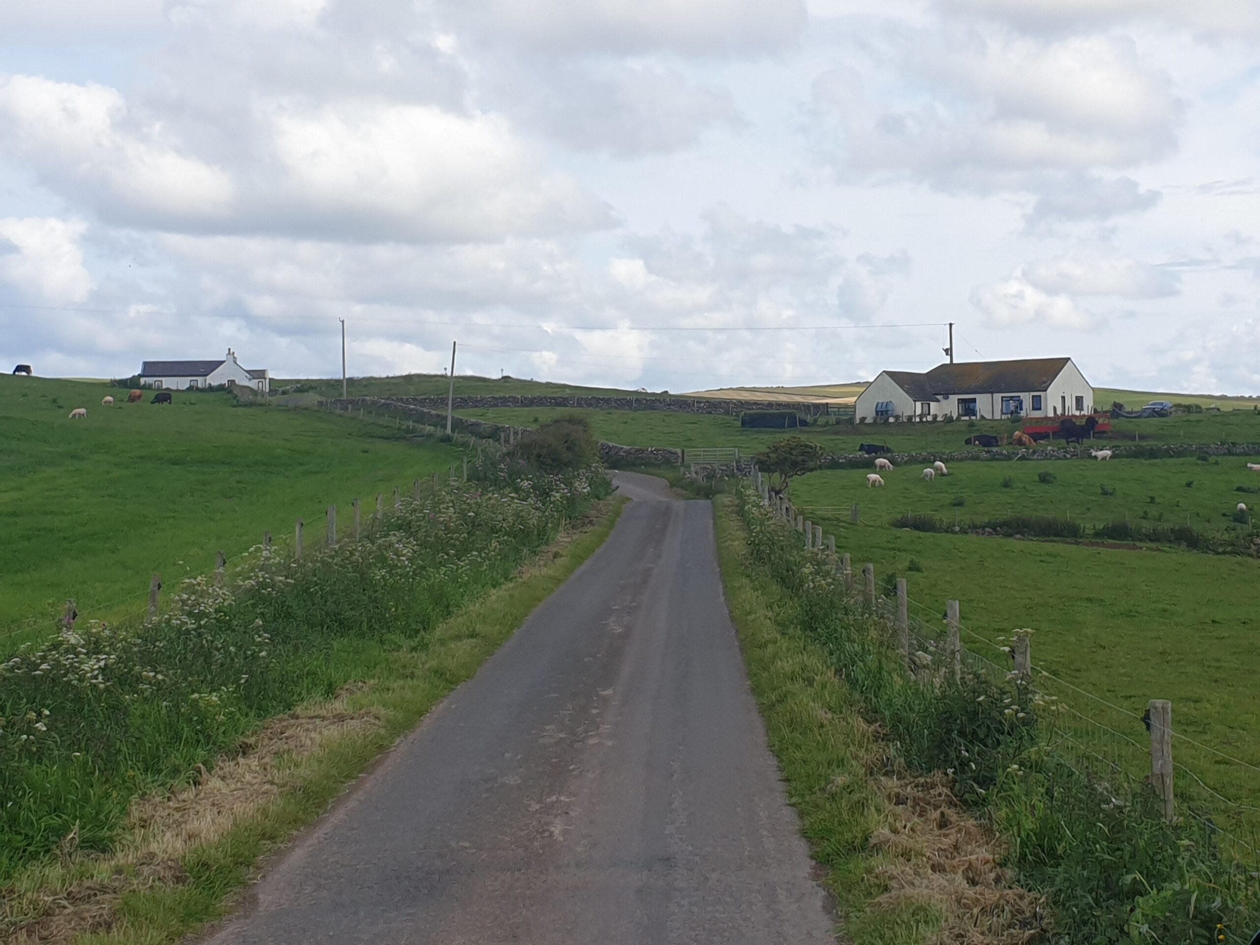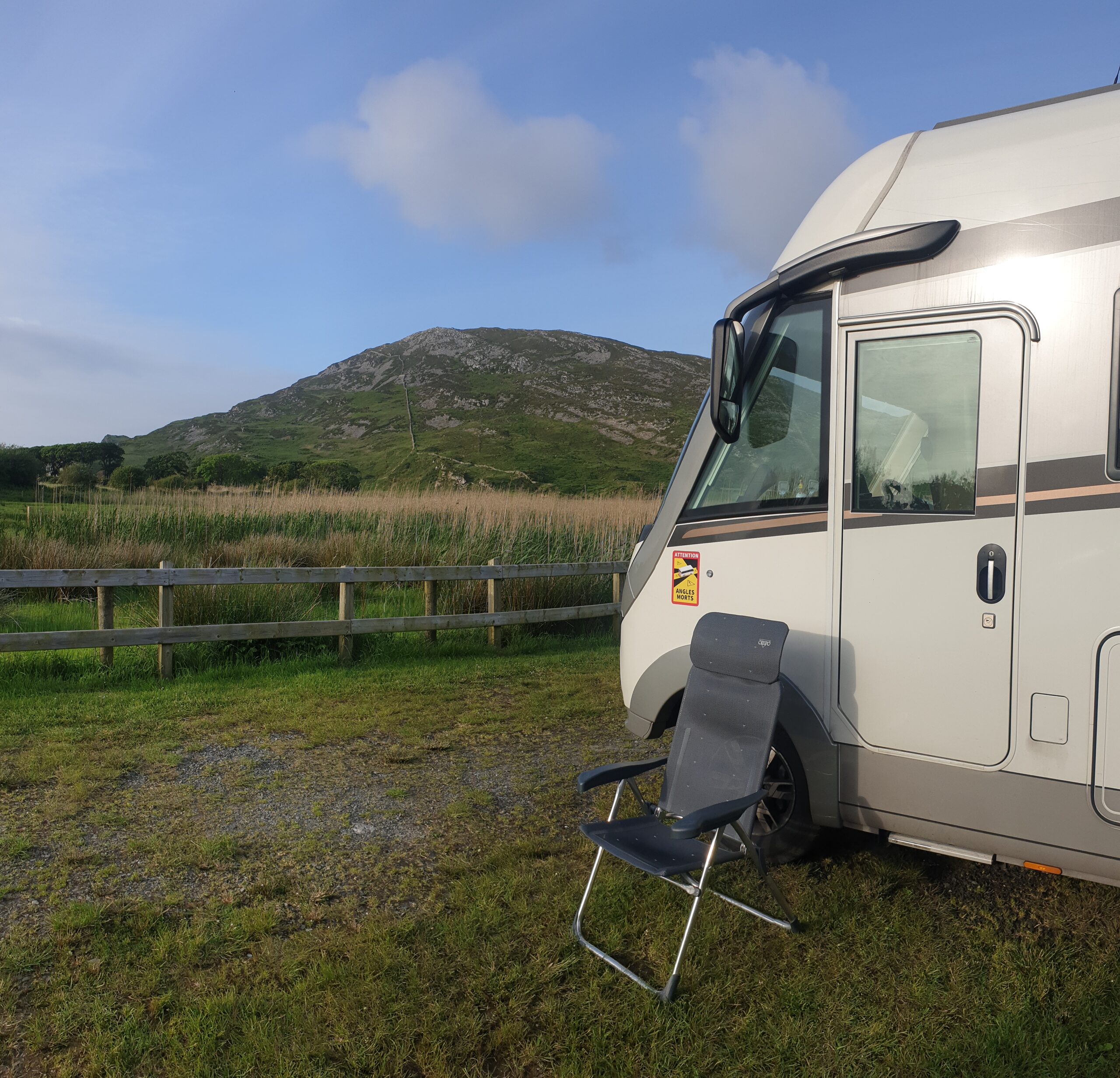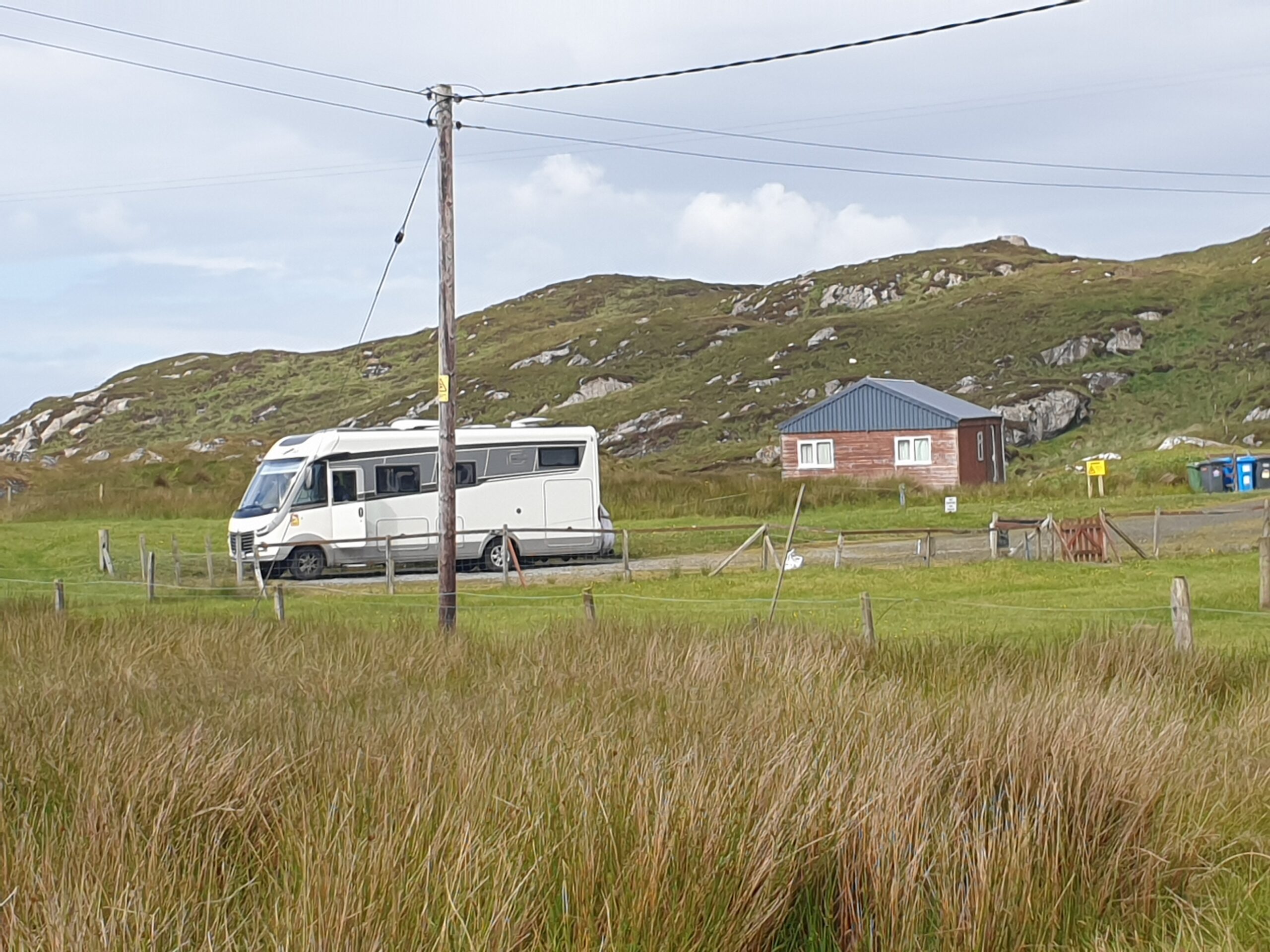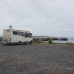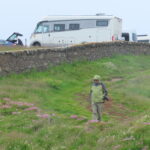Der 1. angefahrene Stellplatz nahe dem Fährhafen behagt uns nicht, denn er ist nicht mehr in Betrieb. Der Ausweichplatz kann allenfalls als verkehrsgünstig gelegen bezeichnet werden. So landen wir in the middle of nowhere über ein schmales Sträßchen auf der Blackthorn Farm, ruhig gelegen und bei klarem Wetter sicher mit tollem Blick.