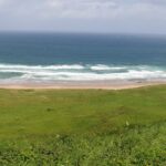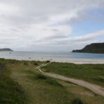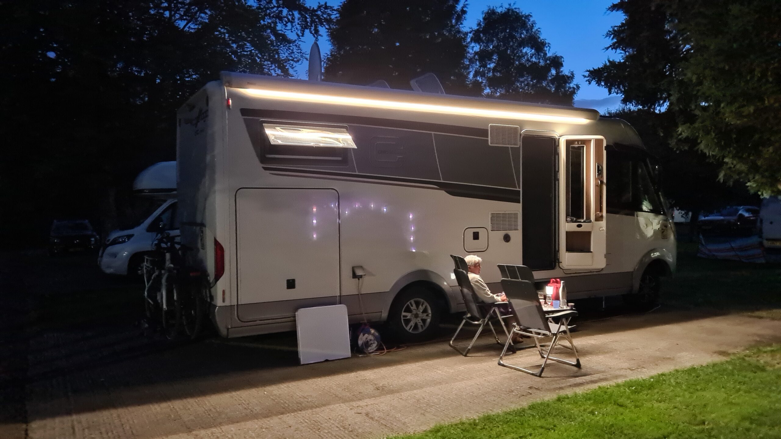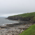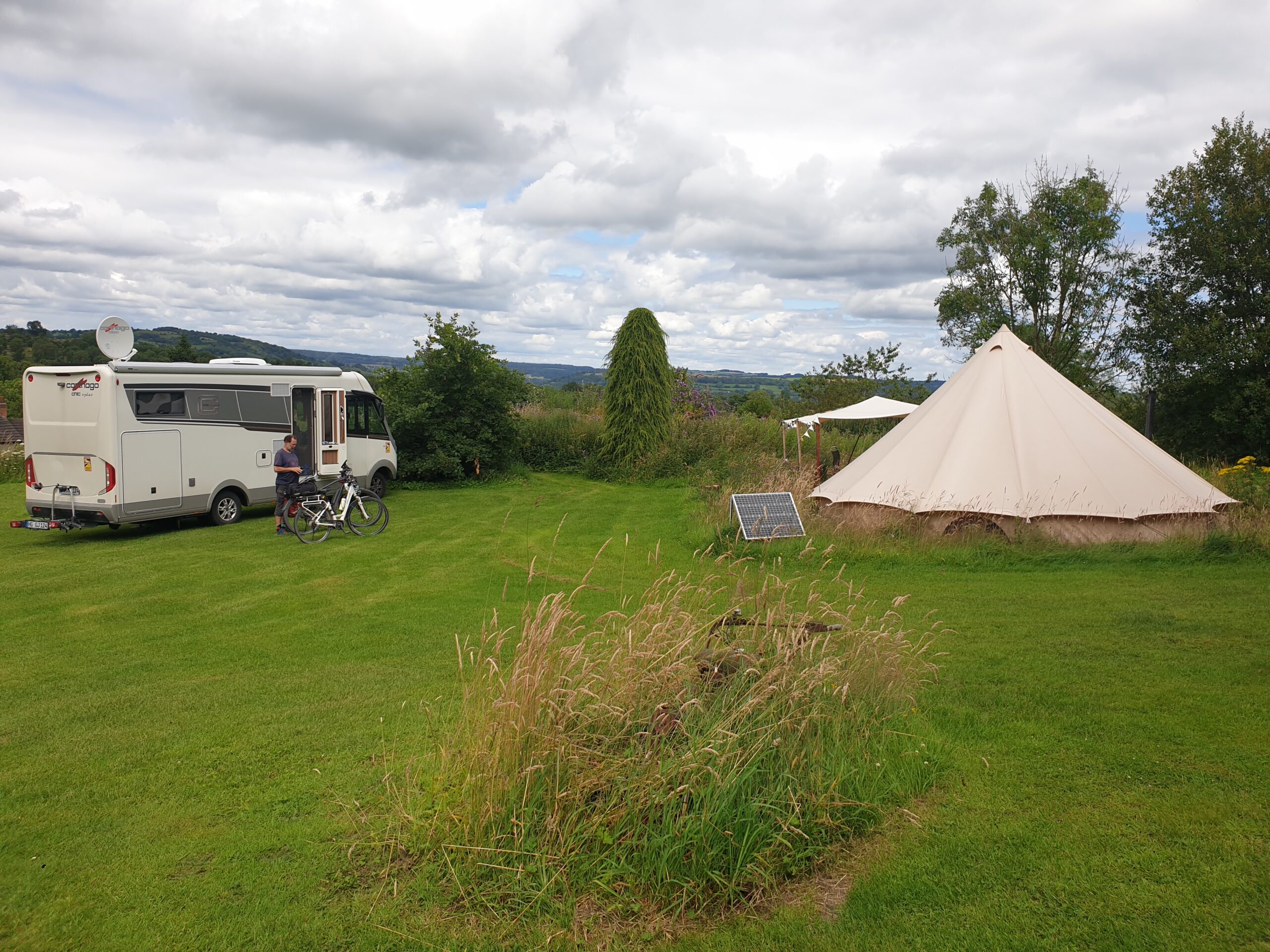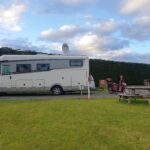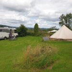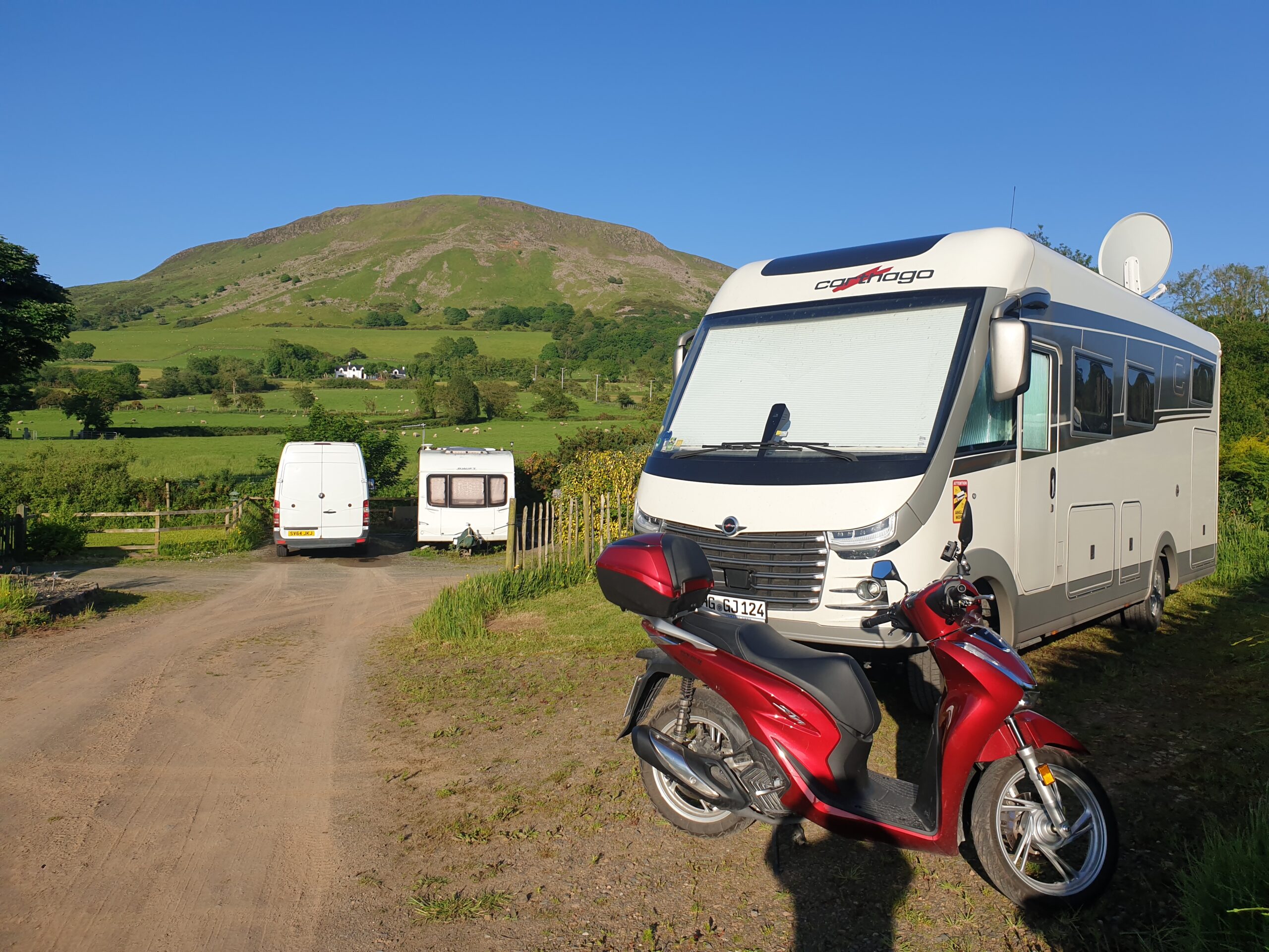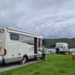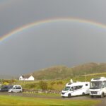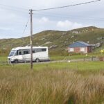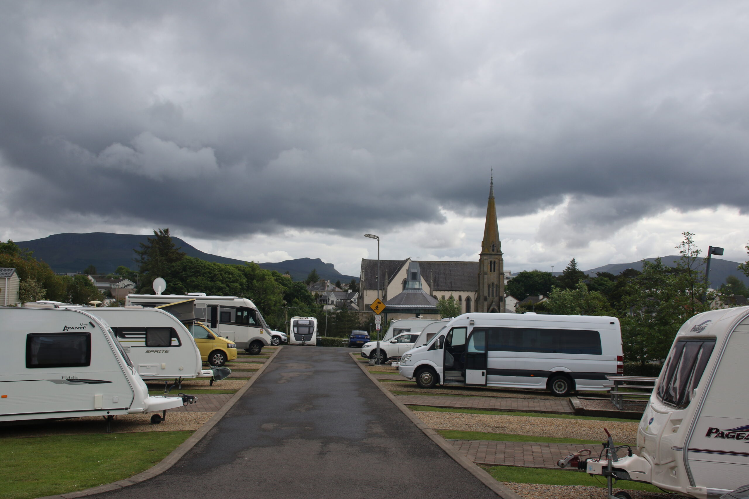 Der 1. angefahrene Stellplatz nahe dem Fährhafen behagt uns nicht, denn er ist nicht mehr in Betrieb. Der Ausweichplatz kann allenfalls als verkehrsgünstig gelegen bezeichnet werden. So landen wir in the middle of nowhere über ein schmales Sträßchen auf der Blackthorn Farm, ruhig gelegen und bei klarem Wetter sicher mit tollem Blick.