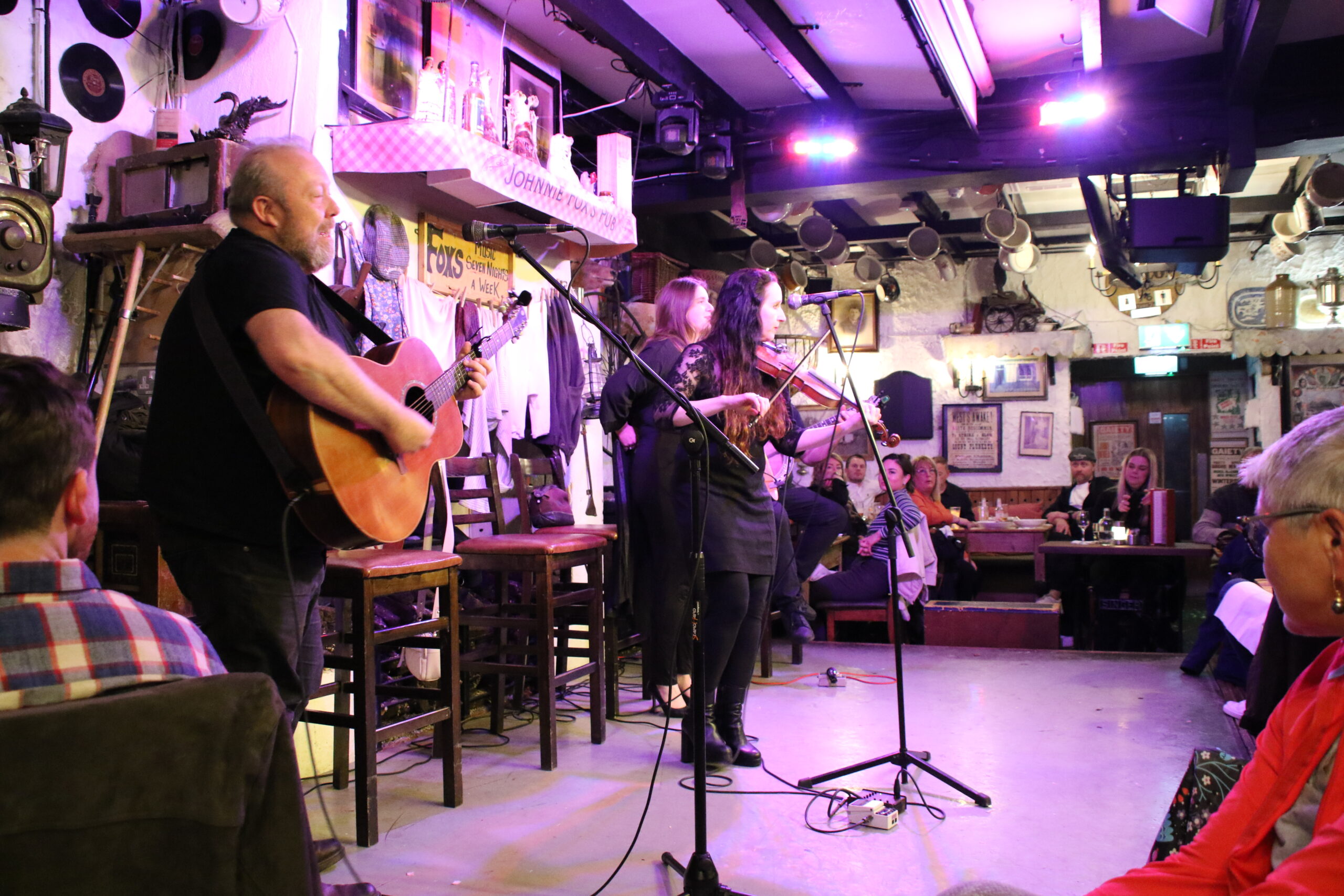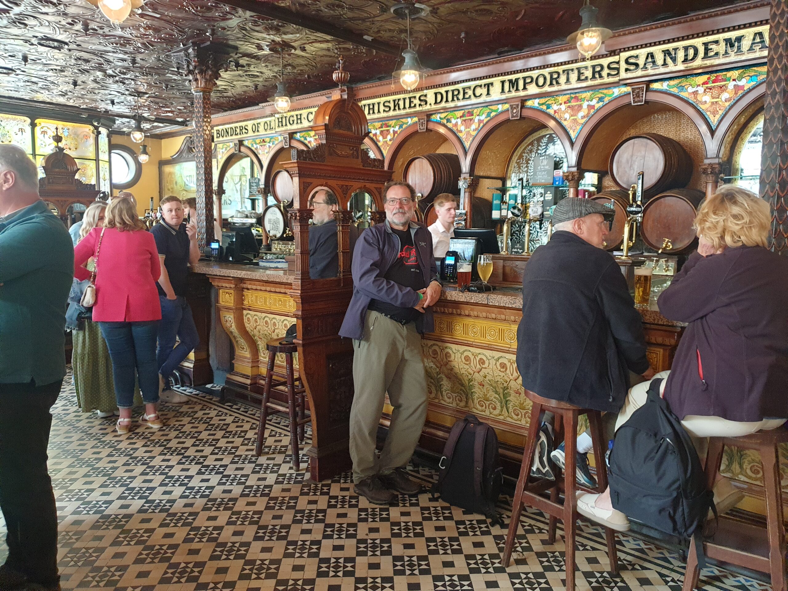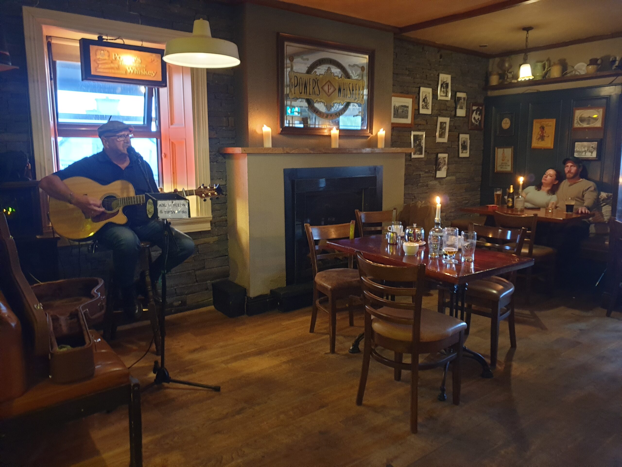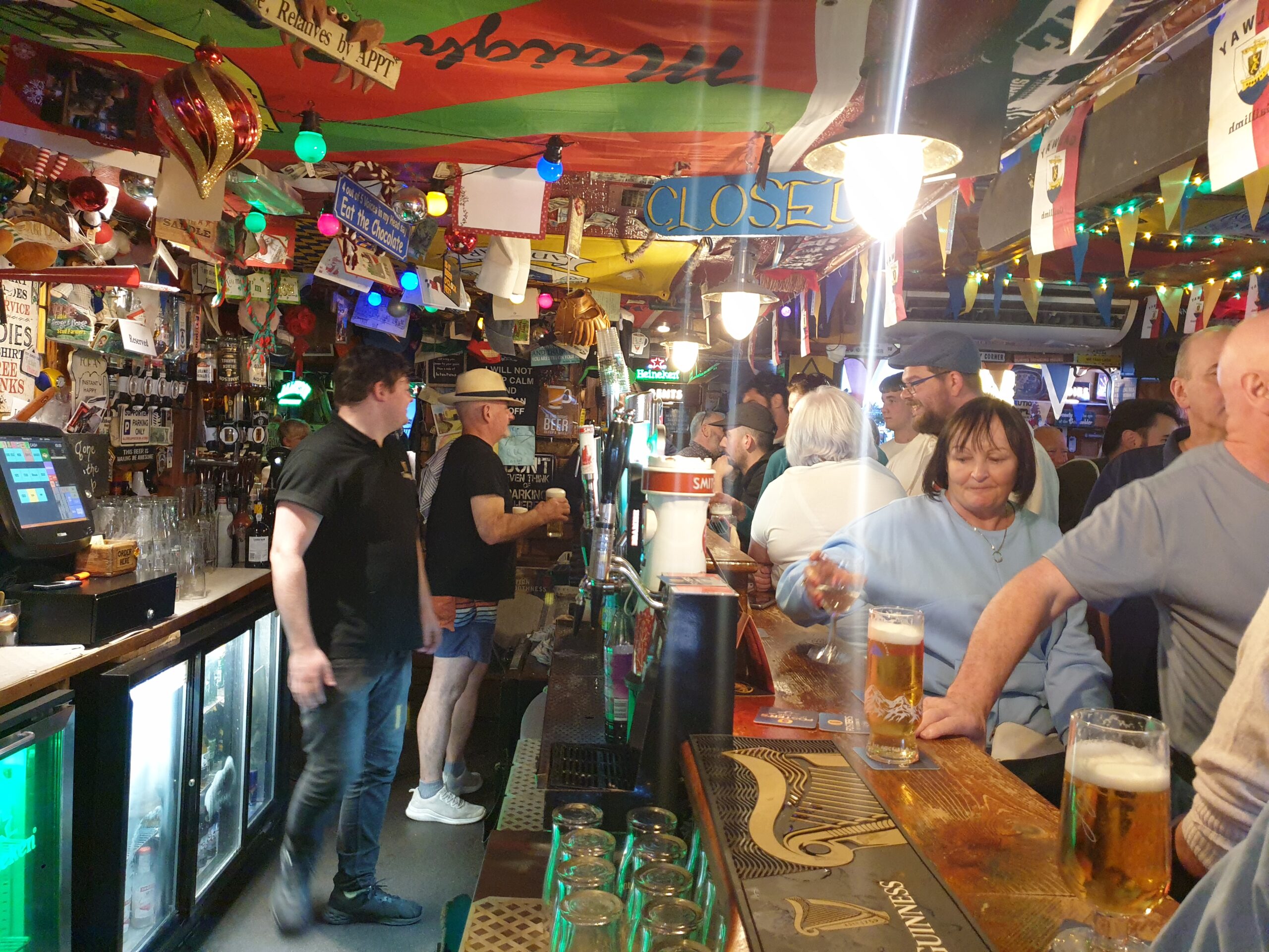 • Johnnie Fox’s Pub: höchstgelegener Pub Irlands, gegründet 1798, ausgestattet mit allerlei alten Gerätschaften. An der Bar nehmen wir schon mal ein Pint Guinness für Jan und ein Pint Cider Bullmer vom Fass für Gabi. Für 19.30 sind wir für die 4-stündige Show mit Essen eingebucht.