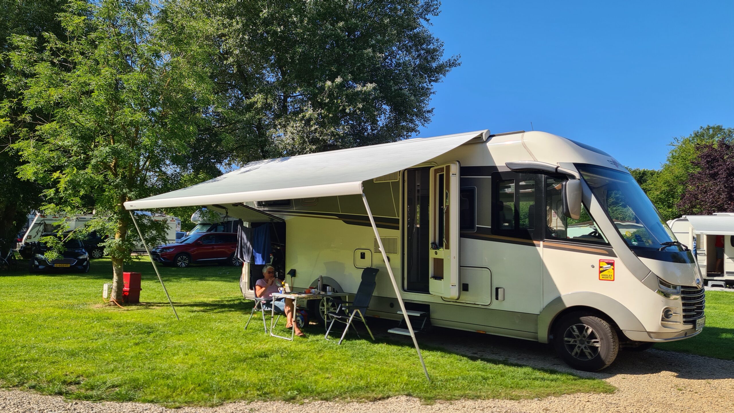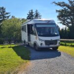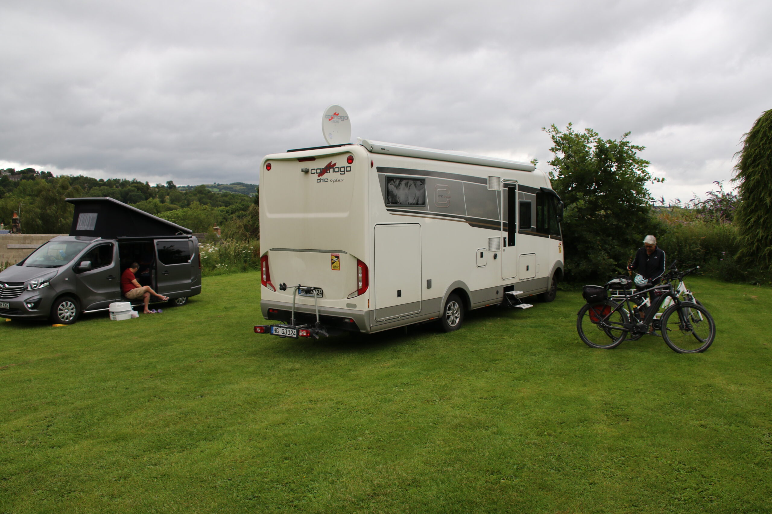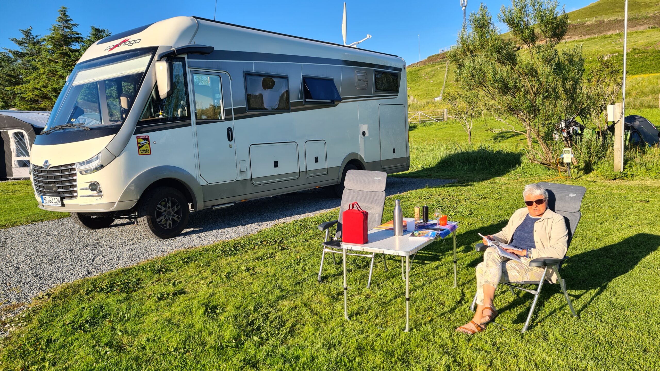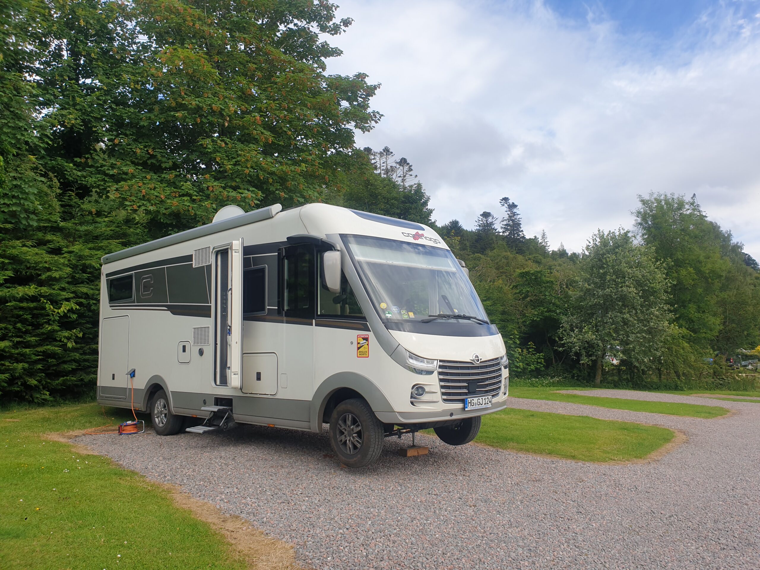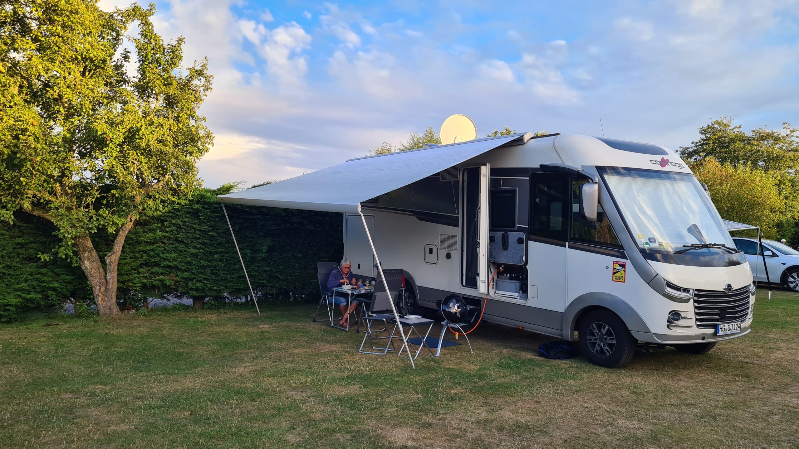 Der Schotterplatz hat Neigung aber reichlich Platz für alle. Im Laufe des Tages finden sich weitere Womos ein.
