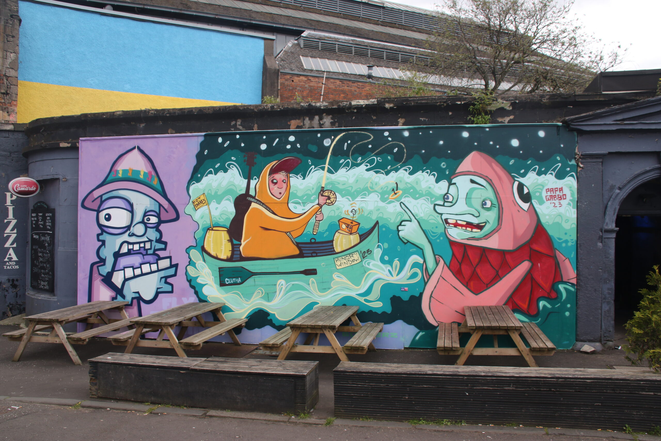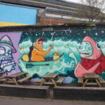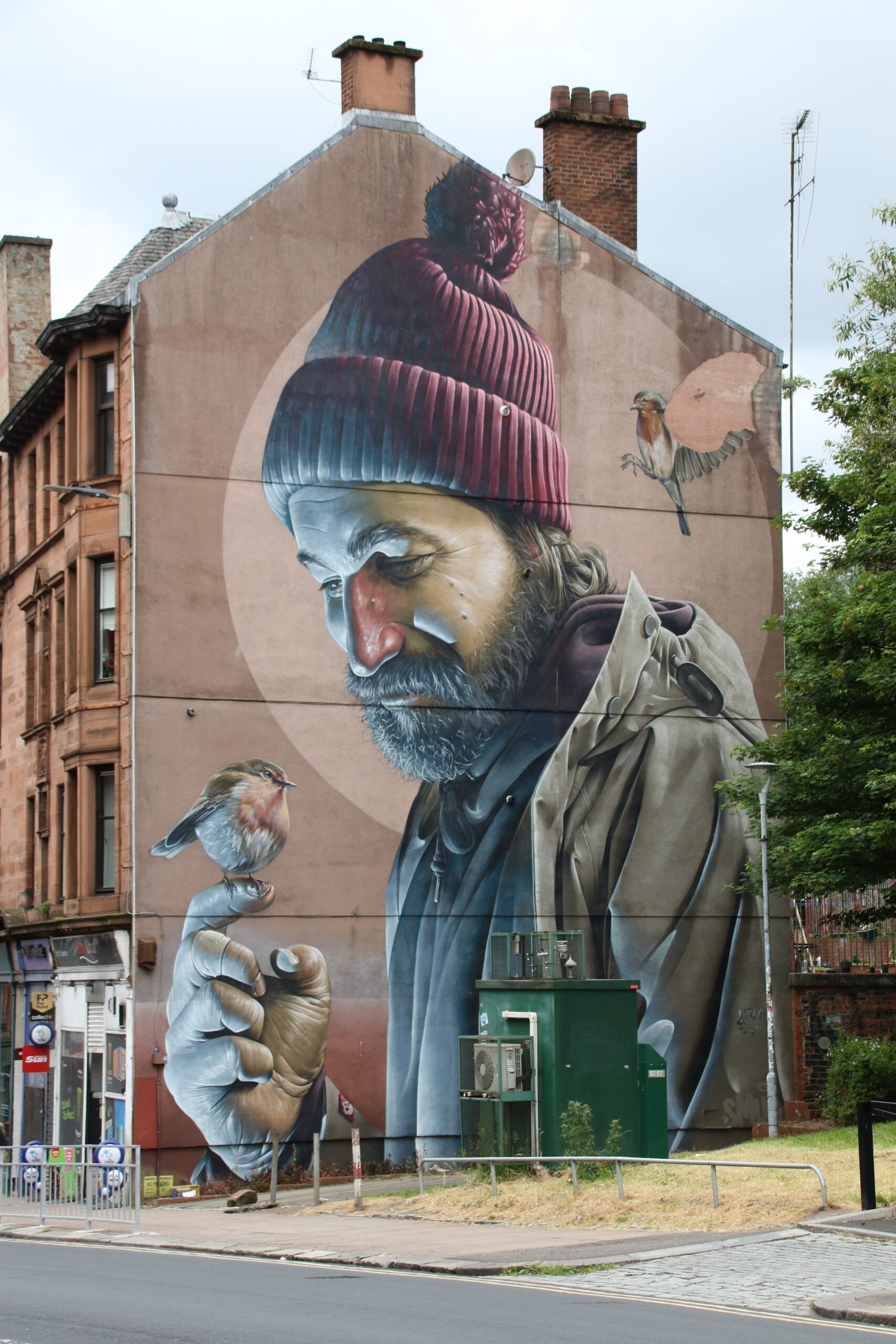 Sogar ein Banksy-Wand-Tattoo auf weißer Hauswand (vermutlich eine Kopie des Luftballon-Mädchens)