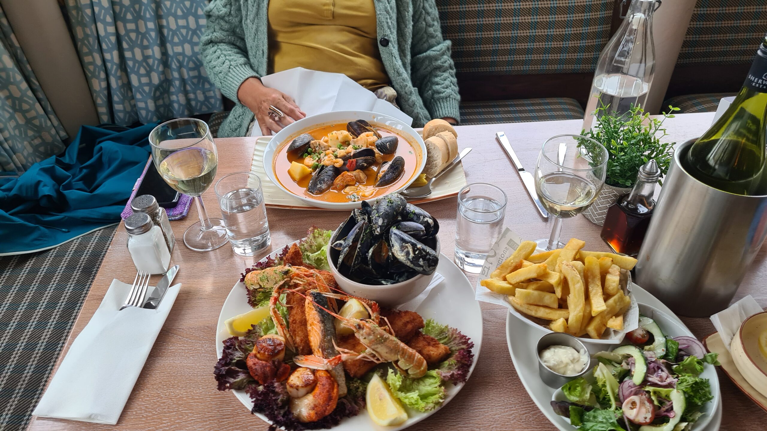 Essen + Trinken: wider Erwarten gut, sogar Gabi konnte meist was Nettes auf der Karte finden. Fish and Chips gibt es natürlich überall und die für Gabi unsäglichen Pies. Aber Steak und Lamm gab es in guter Qualität und Fisch bzw. Schalentiere gebraten oder gegrillt eigentlich auch fast überall.