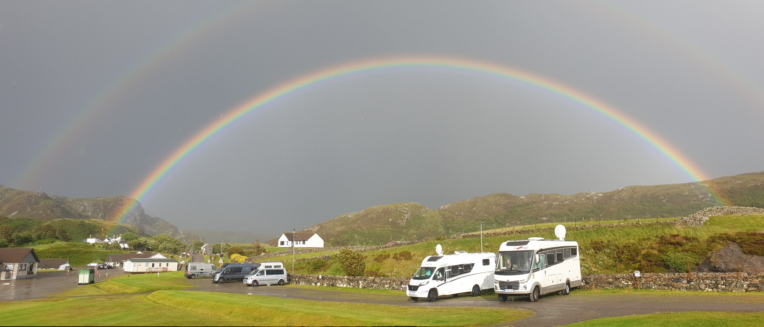 Wetter: In Irland und Schottland im Schnitt 13°C, viel grau und fast jeden Tag zumindest Schauer, nur wenige Sonnentage bzw. -stunden. Bei einer Tagestemperatur von 18°C haben wir den Hochsommer ausgerufen! Alle 4 Jahreszeiten an einem Tag!