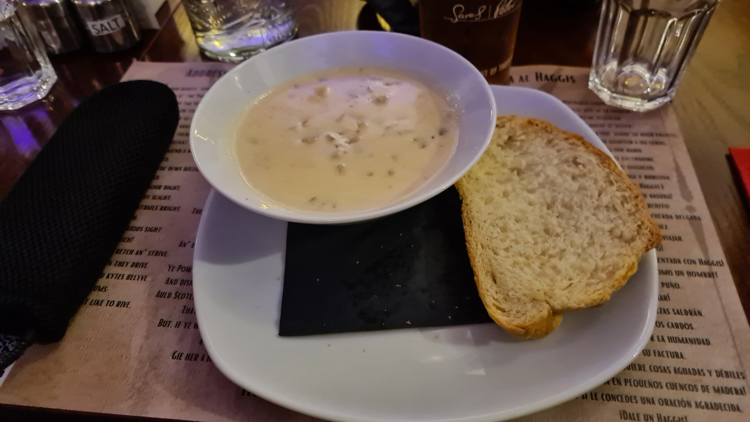 Abendessen: Chez Mossels: Jan Pizza, Gabi Gemüsesuppe
