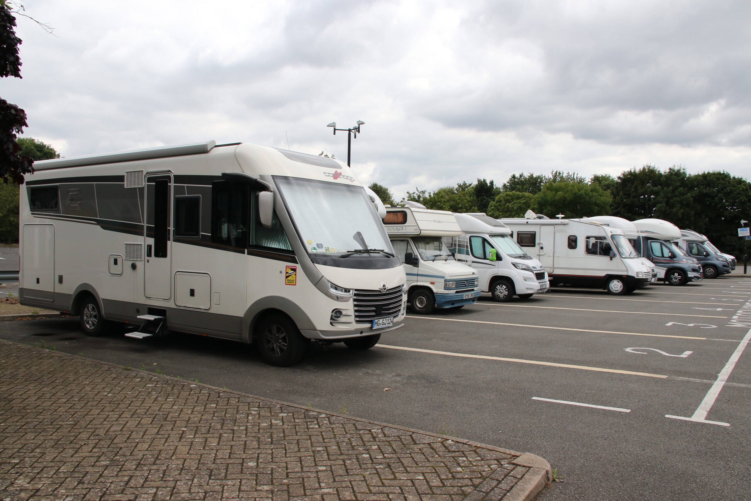 Wir hatten eigentlich vor, in Moers auf dem Womo-Stellplatz zu übernachten. Aber wir hätten zuvor Online reservieren müssen, als wir ankommen, ist kein Platz zu buchen. So fahren wir weiter nach Neukirchen-Vluyn.