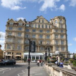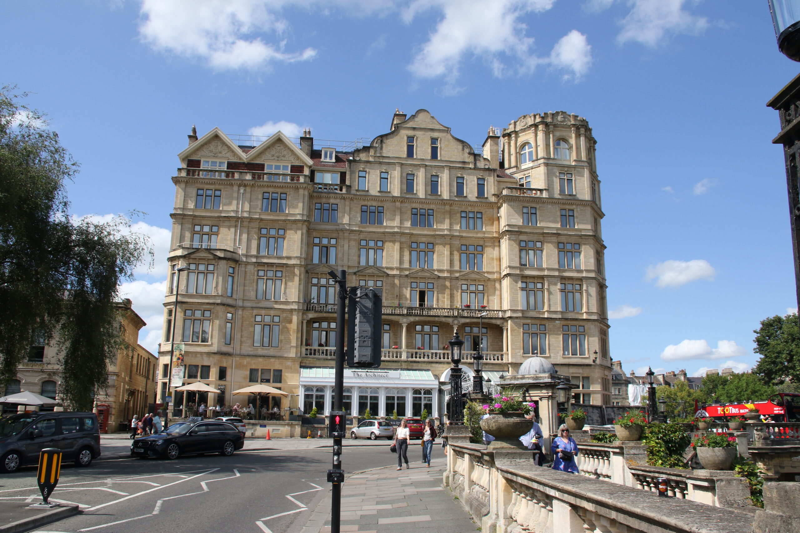Eindrucksvolle Bäderarchitektur begleitet die Promenade auf der anderen Straßenseite. Sehr gediegen.