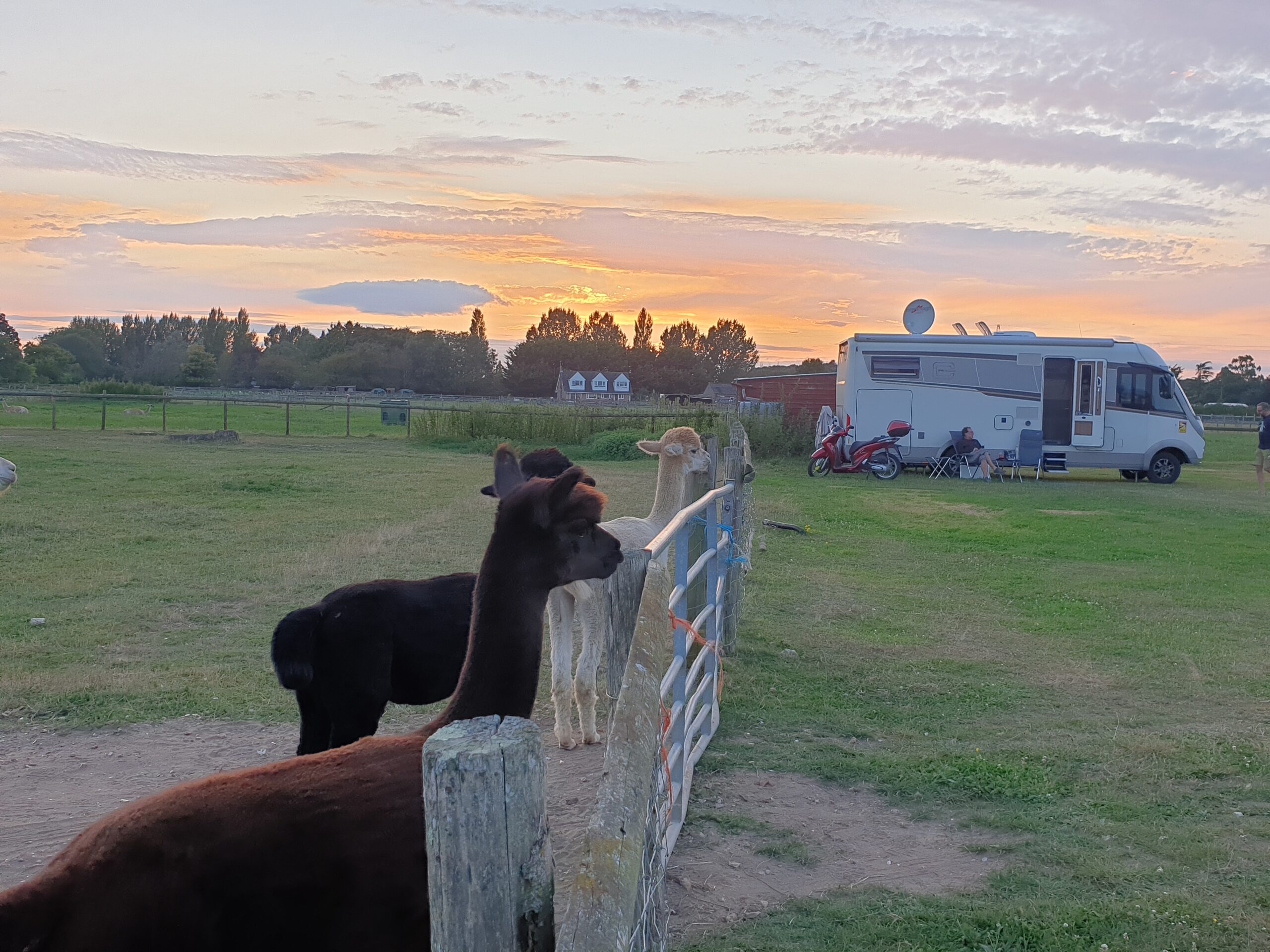 Besonderes: Auf dem Campingplatz wollte Gabi beim Rausfahren Honig und Alpakawolle kaufen. Leider reagierte niemand auf das Klingeln. Nur das Baby-Alpaka ist von alldem unbeeindruckt und stakst in der Herde umher.