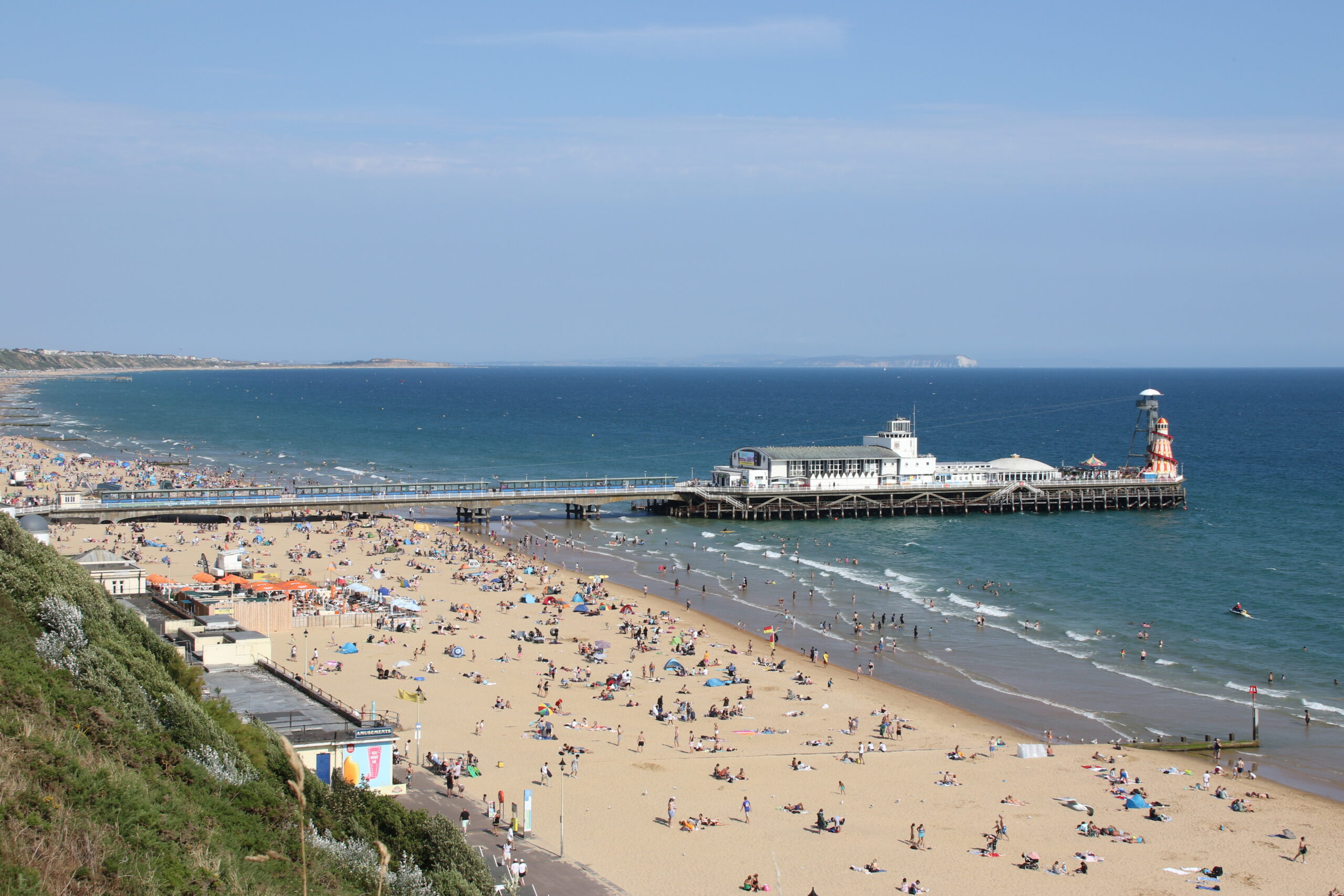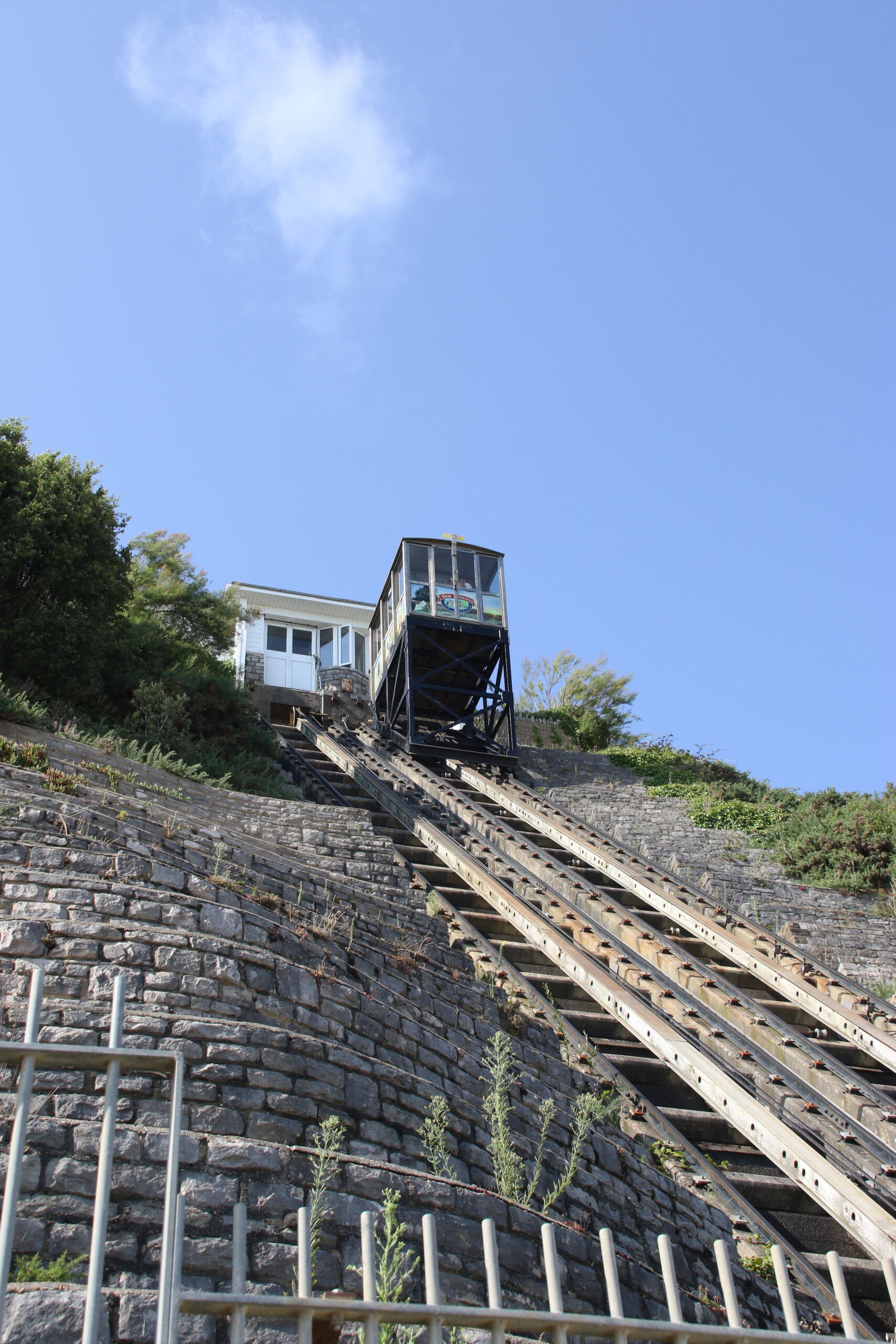 Wir schweben mit dem West Beach Lift, der ein Schrägaufzug ist, auf Strandlevel hinab. Sehr cool! Direkt daneben befinden sich die berühmten bunten Strandhütten. Der Strand und das Wasser davor sind bunt von Menschen. Wir nehmen kaum ausländische Touristen wahr. Es müssen mehrheitlich englische Gäste sein.