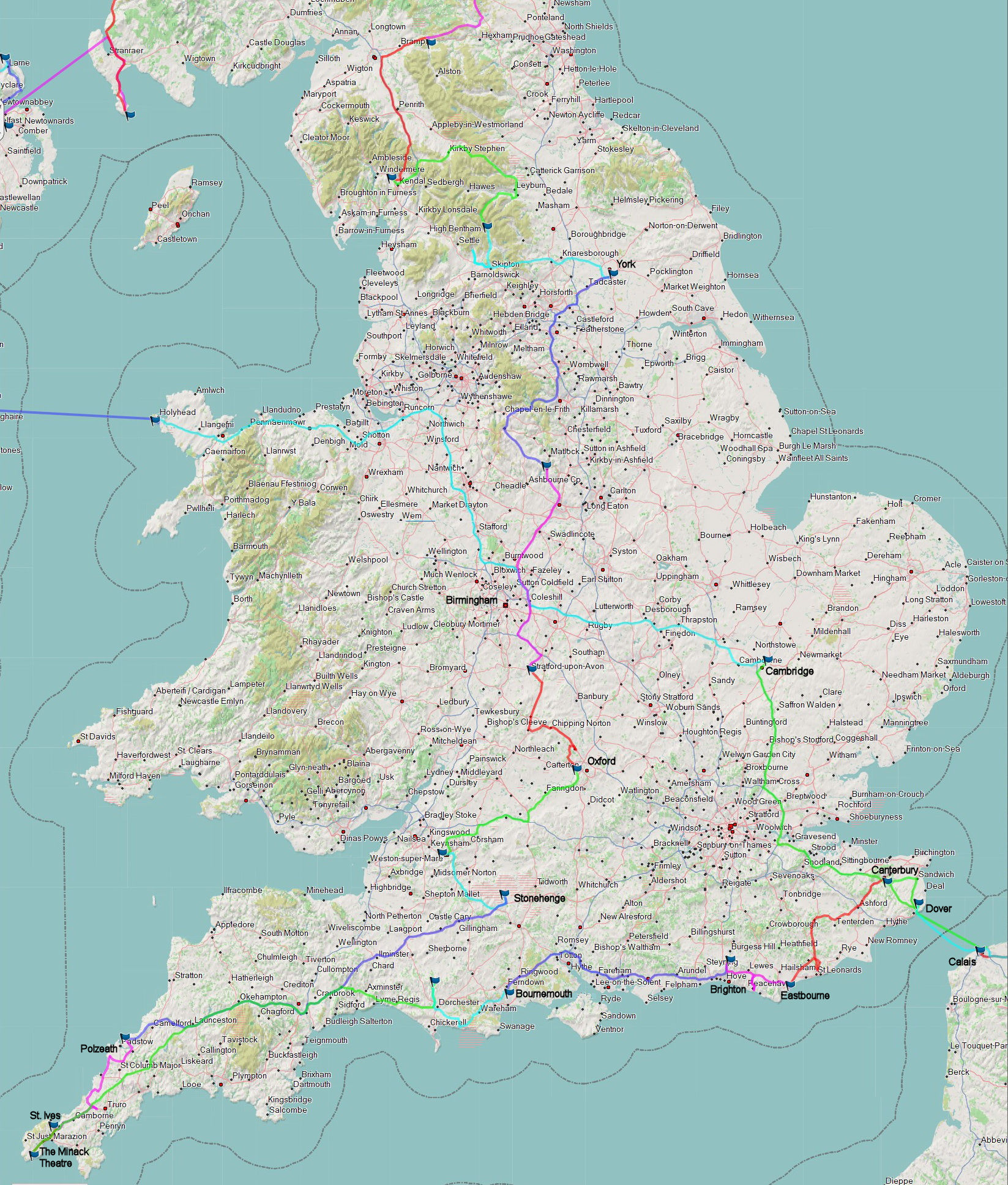 • England: Viel Kultur, mittelalterliche Orte, Theaterbesuche Strathford und Minack-Theater.