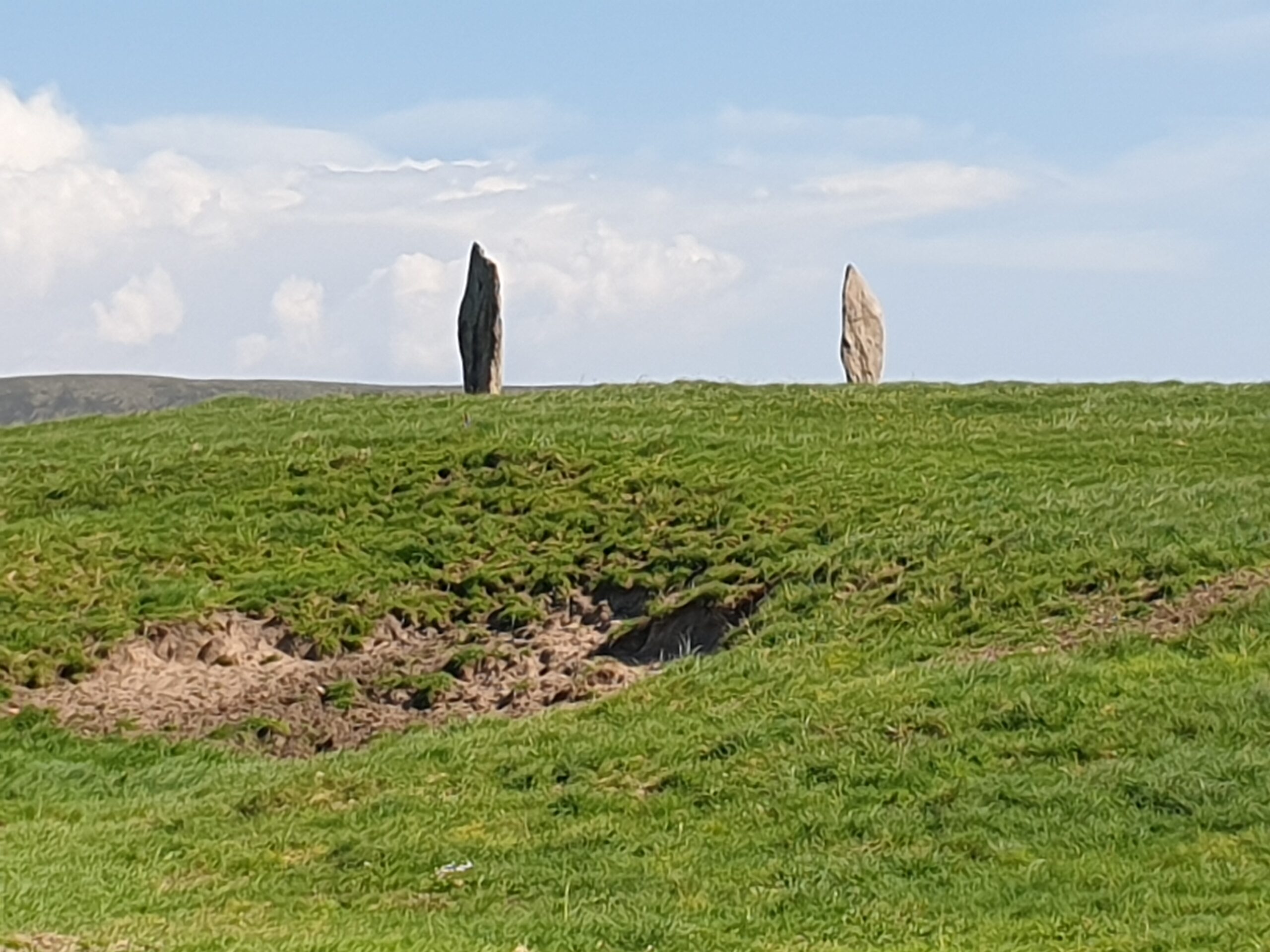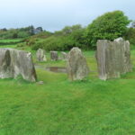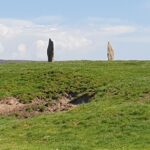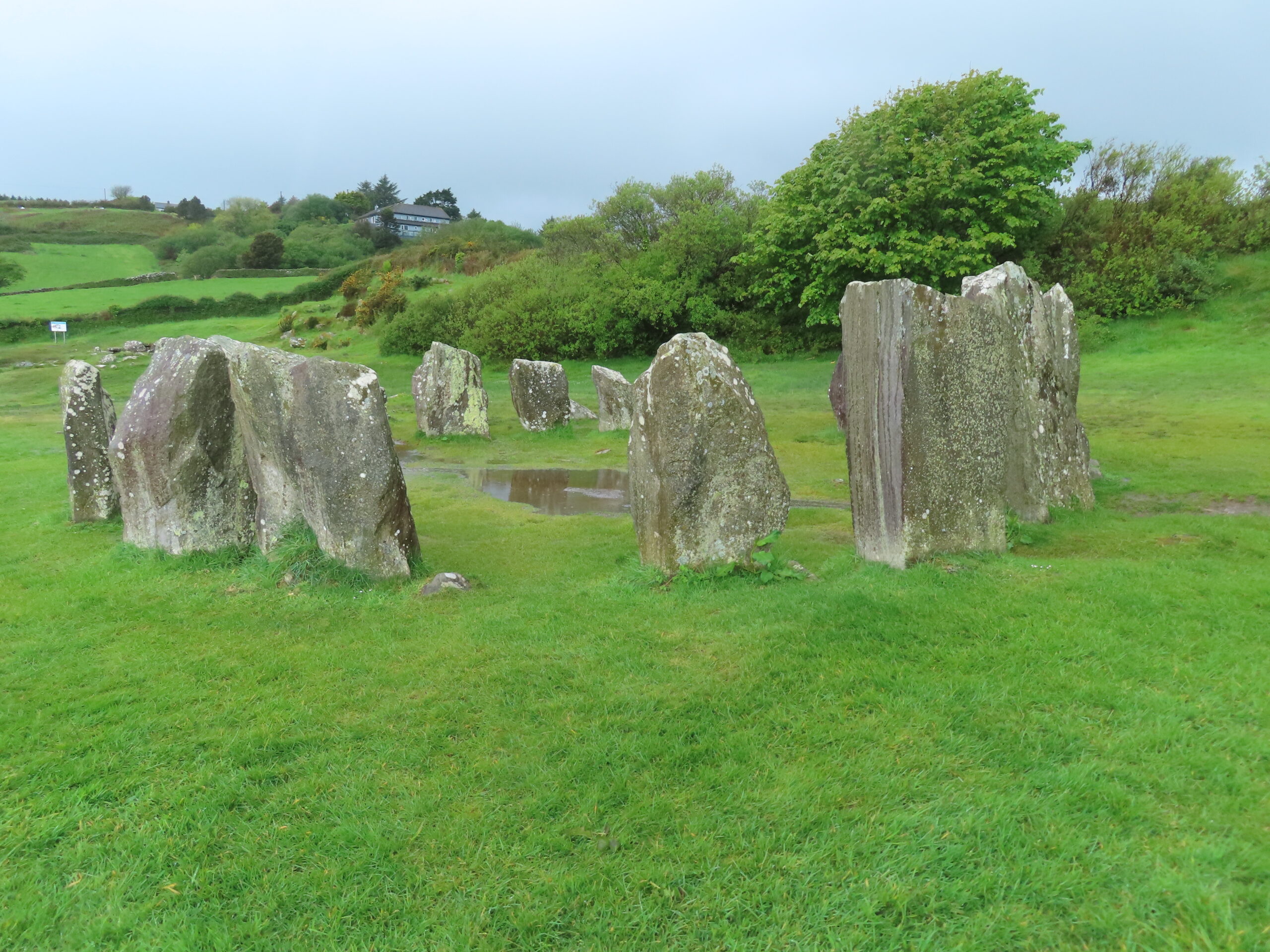 • Menhire Penrhos Feilw nahe unserem Stellplatz: 2 große Menhire auf einer Pferdekoppel auf privatem Grund aber mit öffentlichem Zugang, umgeben von bunten Blumen und Schafwiesen.